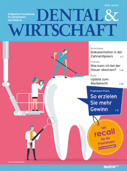 DENTAL & WIRTSCHAFT informiert niedergelassene Zahnärztinnen und Zahnärzte über alles, was unternehmerisch für sie wichtig ist - wie optimale Abrechnung, effektive Praxisorganisation, gute Mitarbeiterführung, Umgang mit Patienten, Rechtswissen für die Praxis, finanzielle Absicherung und Selbstmanagement.